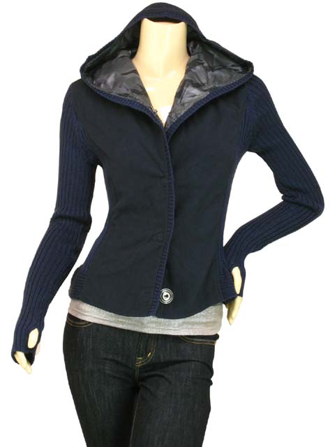 【 品番 : 211236 | フリース × リブ 裏地迷彩柄 フード付き ニットジャケット 】